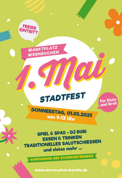 03.12. Weihnachtsmarkt Werneuchen02.12. Seniorenweihnachtsfeier Schönfeld18.11. Fun For Kids Disco 02 Werneuchen23.09. Fun For Kids Disco 01 Werneuchen13.08. 21. Sommerfest Seefeld12.08. 21. Sommerfest Seefeld11.06. Parkfest Löhme (Seefeld- Löhme)08.05. Denkmaleinweihung Rosenpark Werneuchen01.05. 1. Mai Marktplatz Werneuchen11.03. 09. Landschaftstag Regionalpark Barnimer Feldmark e.V. (Werneuchen)27.01. Neujahrsempfang der Stadt Werneuchen
