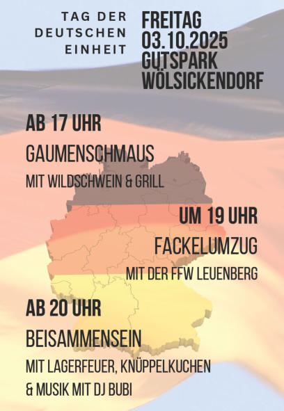 13.12. Senioren-Weihnachtsfeier Werneuchen15.09. FUN FOR KIDS DISCO 54 Adlersaal Werneuchen02.09. Erntedankfest Danewitz Festplatz 17.06. Bürgerfest Marienwerder mit der Kultband KARAT03.06. 95 Jahre FFW in Danewitz Festplatz 13.05. Backofenfest in Danewitz Festplatz12.05. FUN FOR KIDS DISCO 53 Adlersaal Werneuchen0105. Stadtfest 1. Mai Marktplatz Werneuchen29.04. Tanz in den Mai Sophienstädt Festwiese