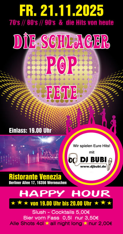 ab 19.00 UhrRistorante VeneziaBerliner Allee 17, 16356 Werneuchen